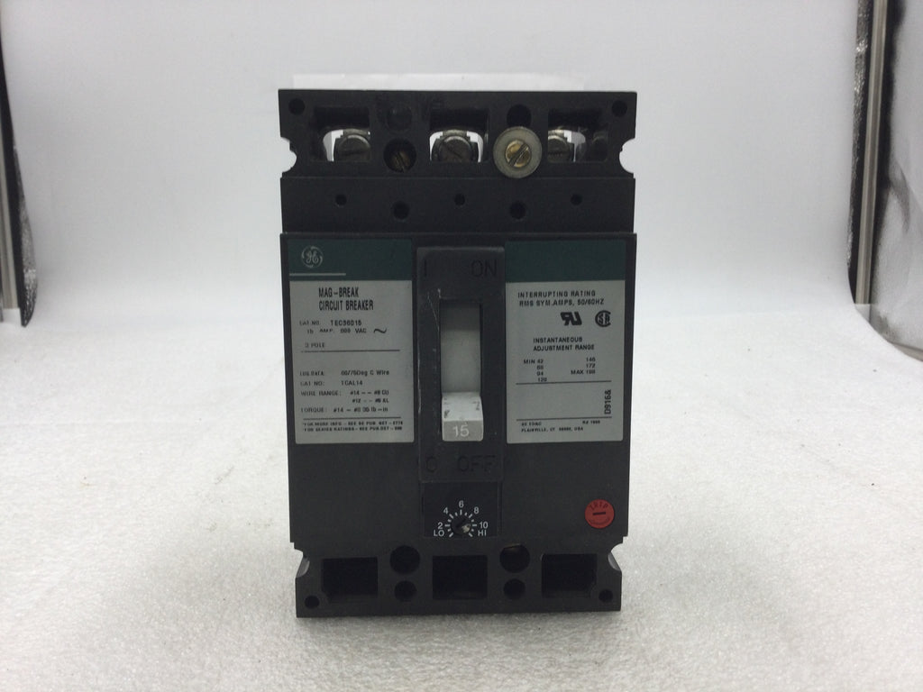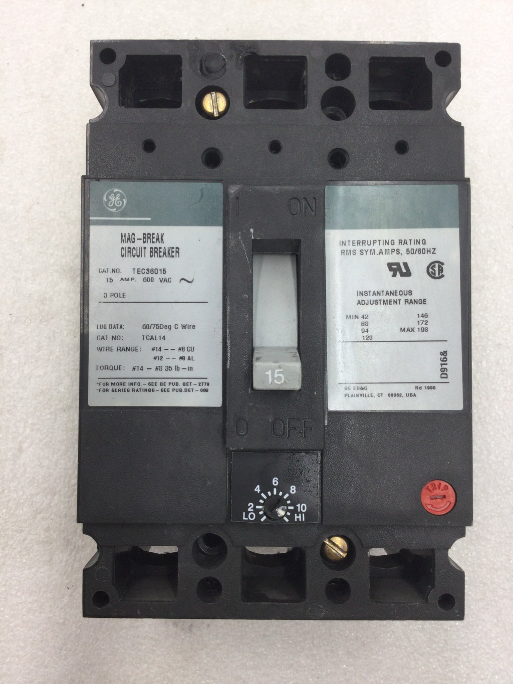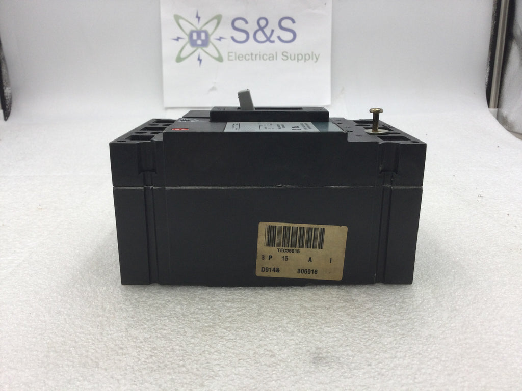 GE General Electric TEC36015 Green Faced 3 Pole 15 Amp 600 VAC With Instantaneous Trip Circuit Breaker