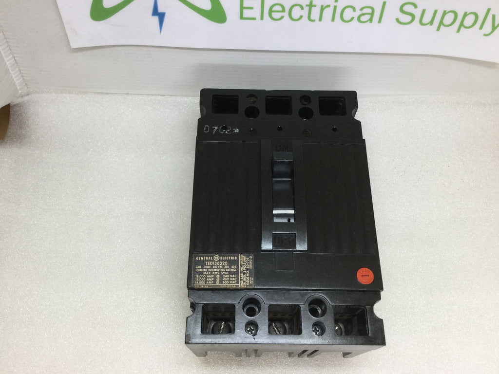 GE General Electric TED136020 20 Amp 3 Pole 600V Circuit Breaker