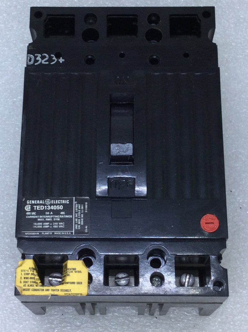 General Electric TED134050 50 Amp 3 Pole 480V Circuit Breaker - Cosmetic Flaw