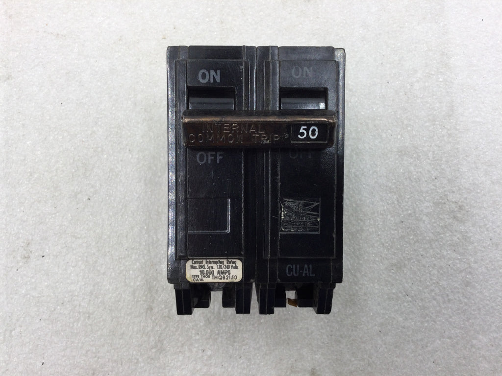 GE/General Electric THQB2150 Circuit Breaker 50A 2 Pole 120/240VAC Bolt In Circuit Breaker Sticker Face