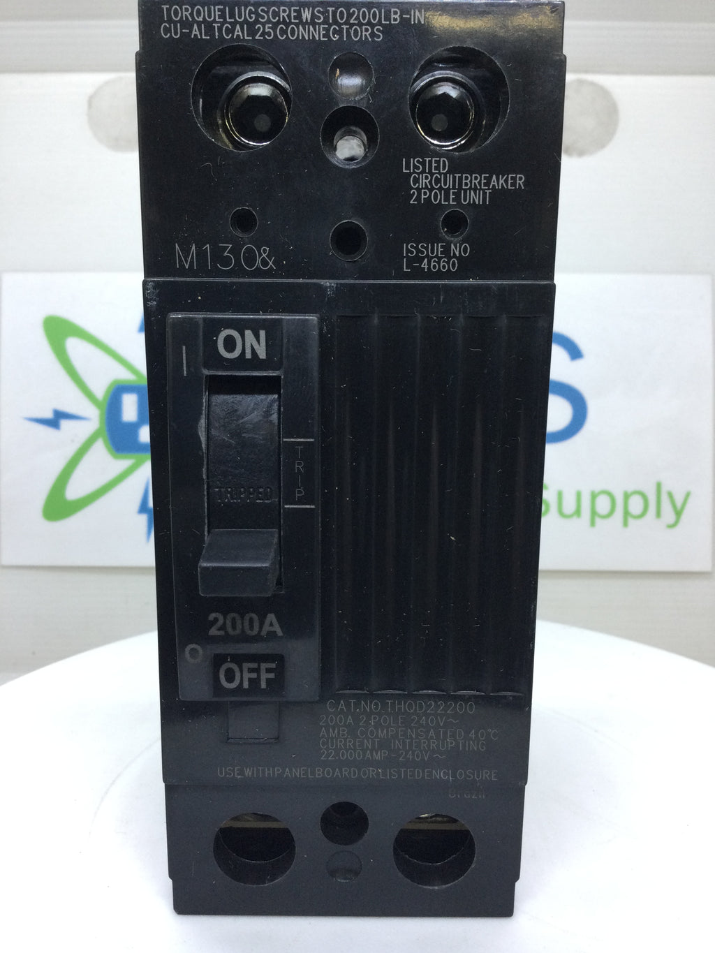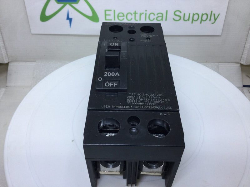 GE THQD22200 Circuit Breaker, 200 Amp, 2 Pole, 240VAC, 22,000K