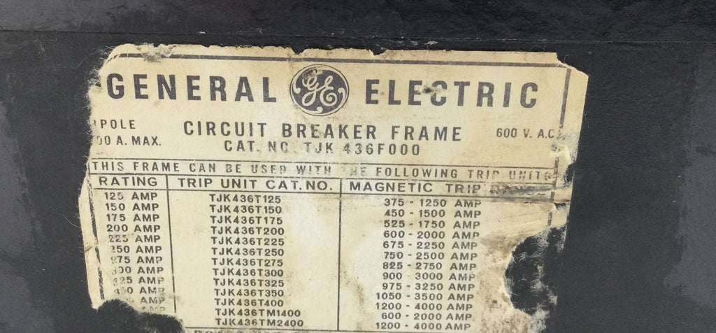 General Electric TJK436F000 400 Amp 3 Pole 600V Circuit Breaker w/125 Amp Trip