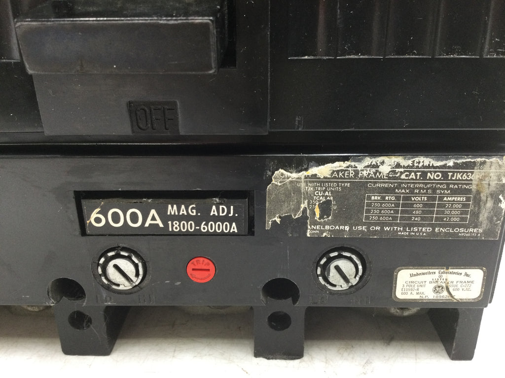 General Electric TJK636F000 600 Amp 3 Pole 600V Circuit Breaker w/ 600 Amp Trip