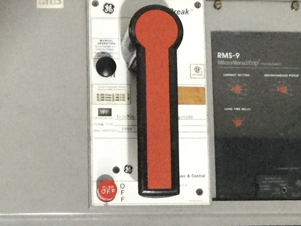 General Electric TP2020S Insulated Case Circuit Breaker. Family Power Break I; Type TP; 3 Pole; 3 Phase; 2000 Amp; 65kA@480V AIC; Bolt-On Mounting.