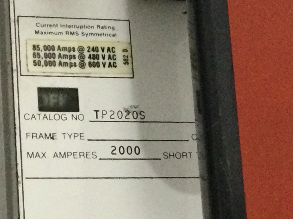 GE General Electric TP2020S 2000 Amp 600V 3 Pole Bolt on Circuit Breaker w/Aux Trip Unit