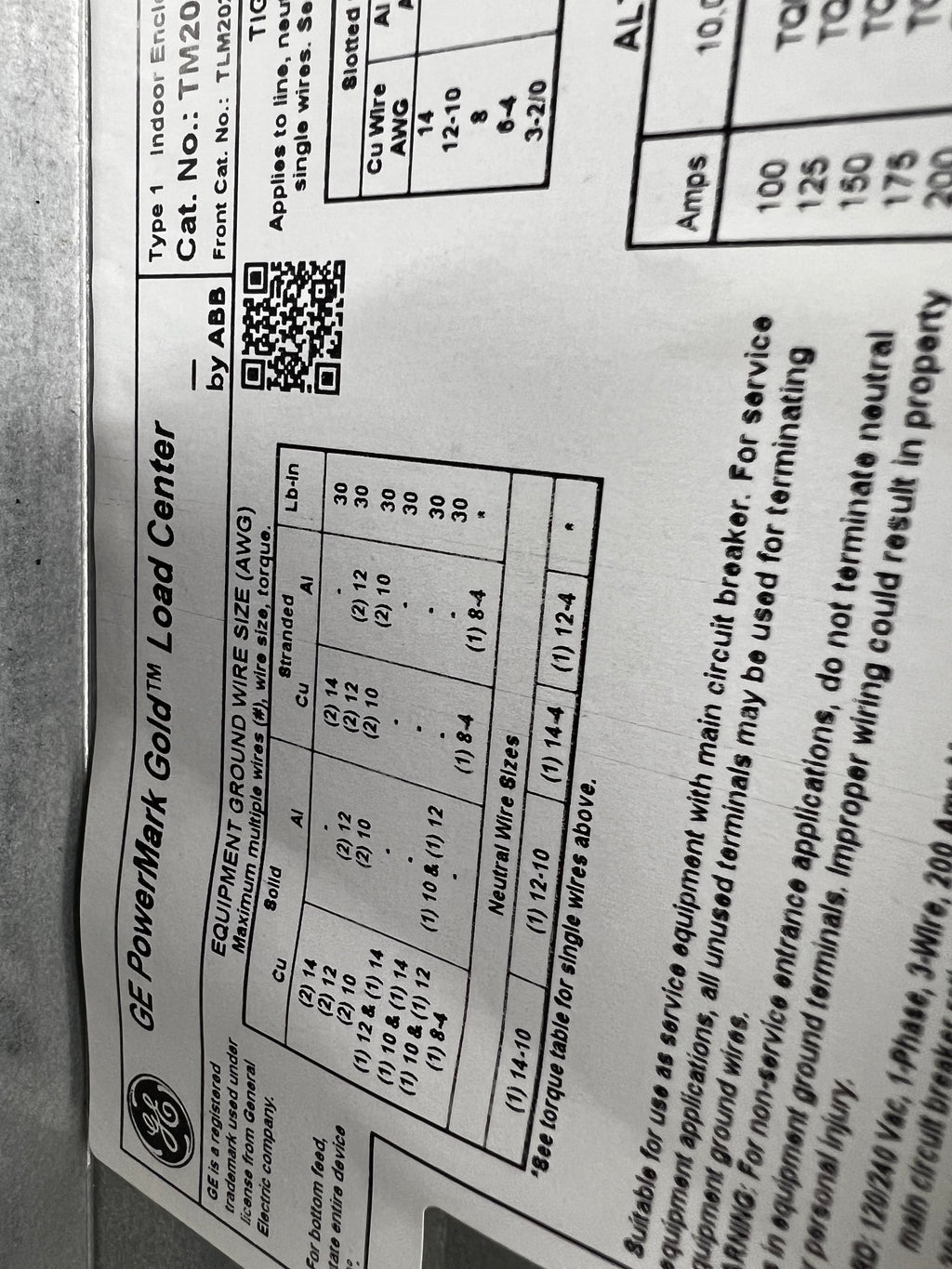 GE Main Lug Indoor 200 Amp 20/40 Spaces 120/240v TLM2020CCUBK1
