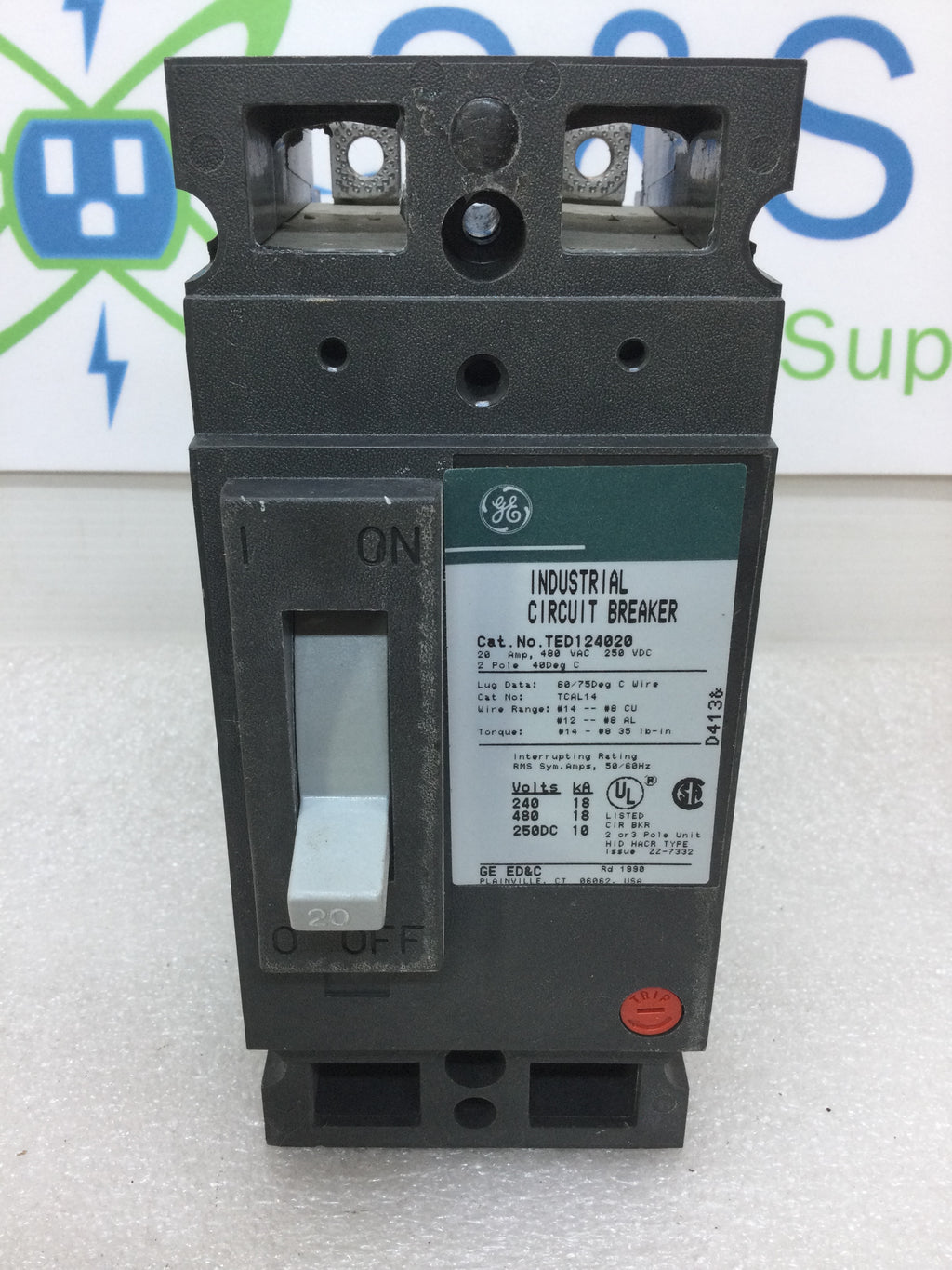 GE General Electric TED124020 20 Amp 2 Pole 480V Circuit Breaker