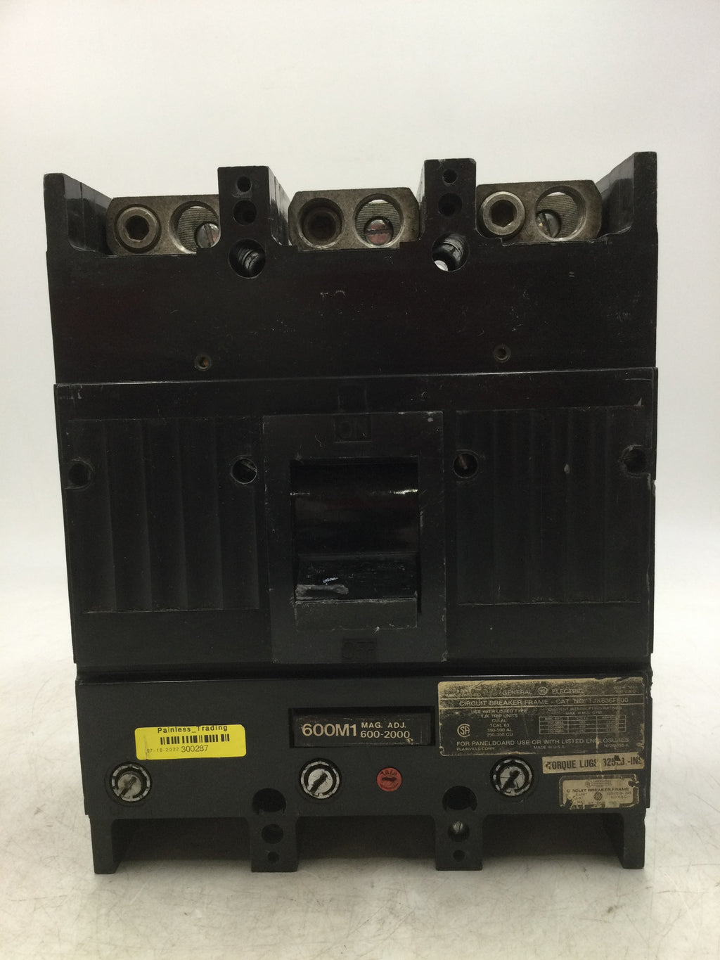 GE General Electric TJK636F000 3 Pole 600 Amp 600V Molded Case Circuit Breaker w/600MI Trip
