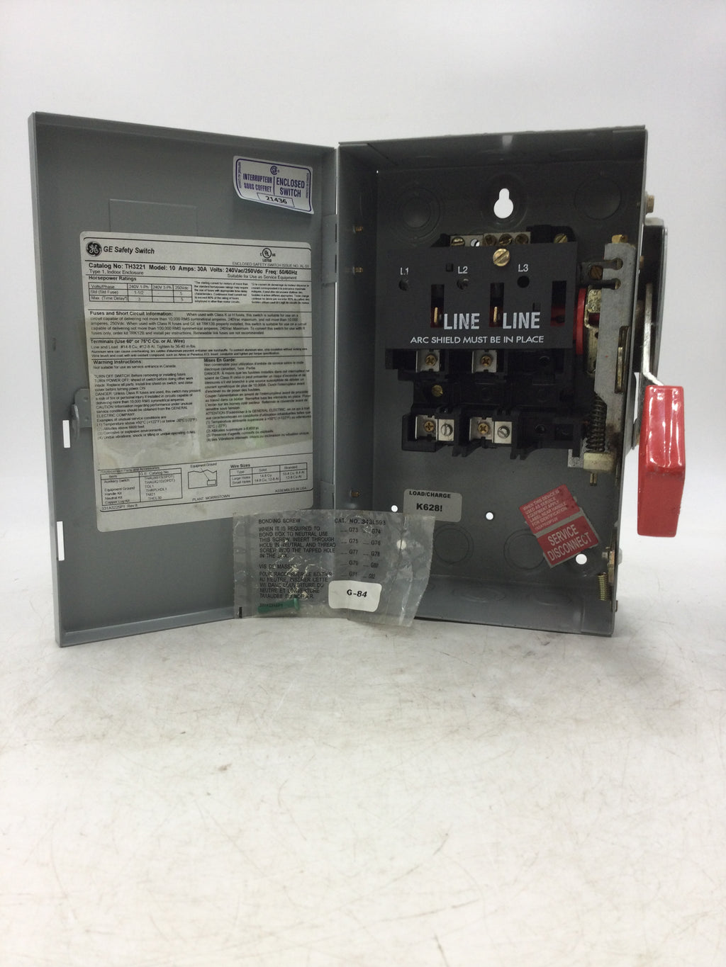 The General Electric TH3221 is a 30 Amp, 2 Pole fusible safety switch designed for 120/240V applications. It provides reliable circuit protection by combining a robust switch mechanism with fuse protection, ensuring safe disconnection and overload prevention. Ideal for industrial and commercial electrical systems, this switch enhances safety and operational control while maintaining compliance with electrical standards. Its durable construction supports long-term performance in demanding environments.