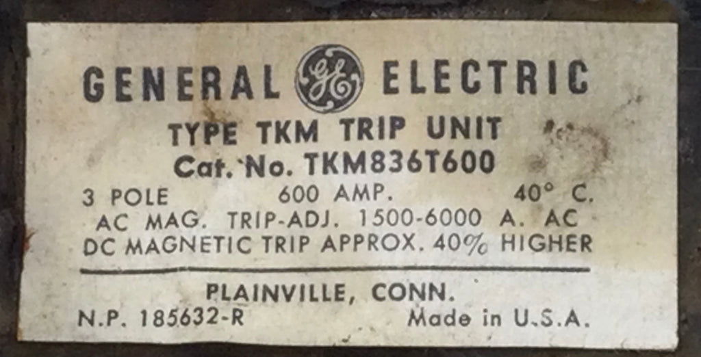 General Electric TKM836T600 is a heavy-duty circuit breaker trip unit engineered for industrial and commercial electrical systems. This 600 amp, 3-pole unit operates at 600V and delivers reliable overcurrent protection in demanding applications. Built to GE's exacting standards, it provides precise amperage trip settings and consistent performance in high-capacity power distribution.