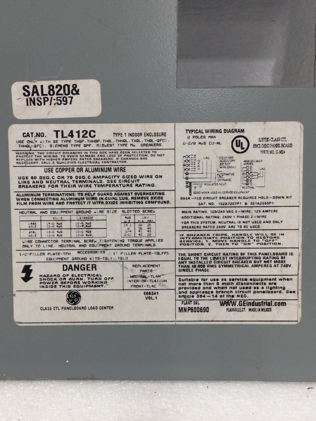 General Electric TL412C 60 Amp 8 Space 120/240V Dead Front Only 10 3/8" x 8 5/8"