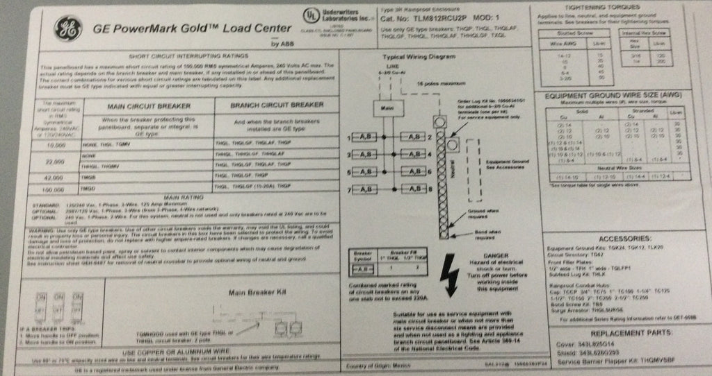 General Electric TLM812RCU2P Single Phase 3 Wire 125A 8/16 Spaces 120/240 Outdoor Main Lug
