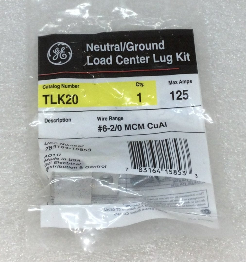 The General Electric TLK20 lug kit is designed for load centers, compatible with #6 to 2/0 MCM copper or aluminum neutral and ground wires. It ensures secure and reliable connections, supporting efficient electrical distribution with robust construction for long-lasting performance. Ideal for upgrading or replacing load center lugs to maintain safe grounding and neutral paths.