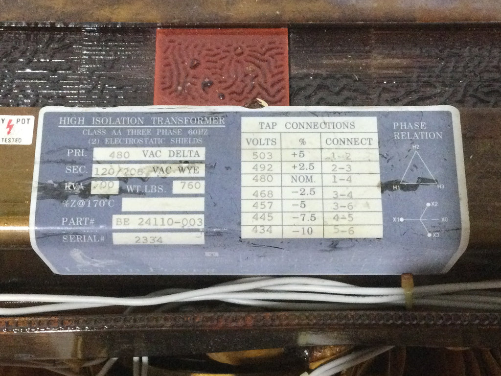 United Power High Isolation Transformer BE24110-003 480Vac Delta 120/208Vac WYE KVA 100