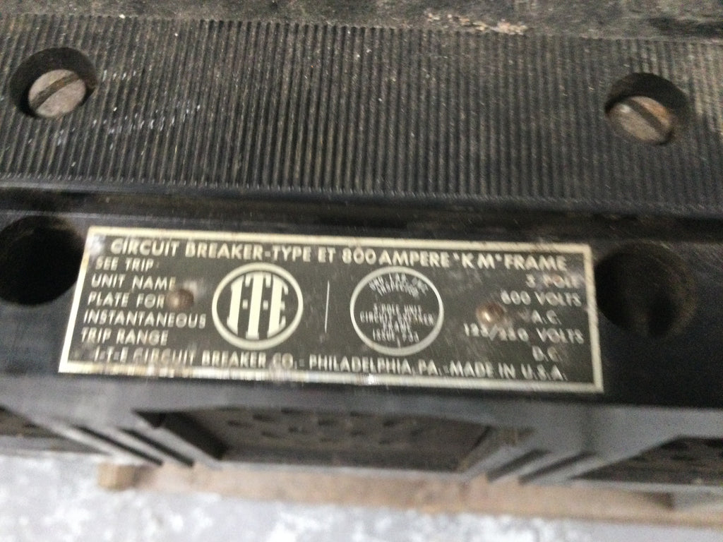ITE KM3F800 800 Amp 3 Pole 600V Type ET w/800 Amp Trip Circuit Breaker