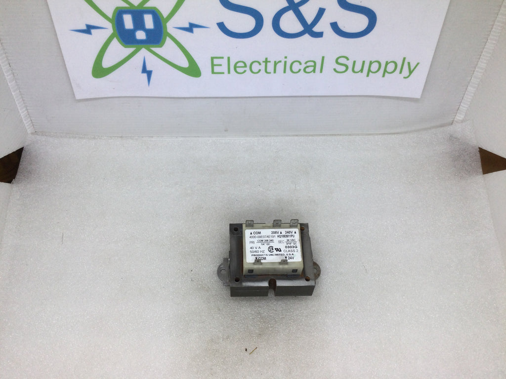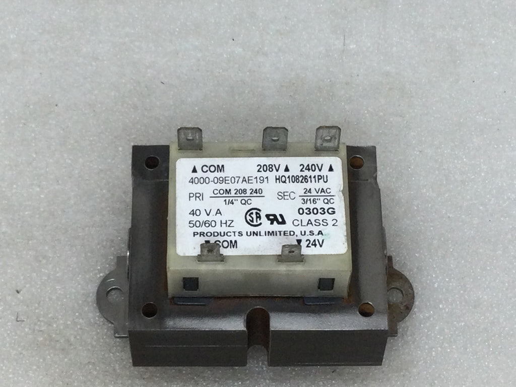 Products Unlimited 4000-09E07AE191 Primary: COM208/240VAC, Secondary: 24VAC, 40VA, 50/60HZ Class2 Transformer