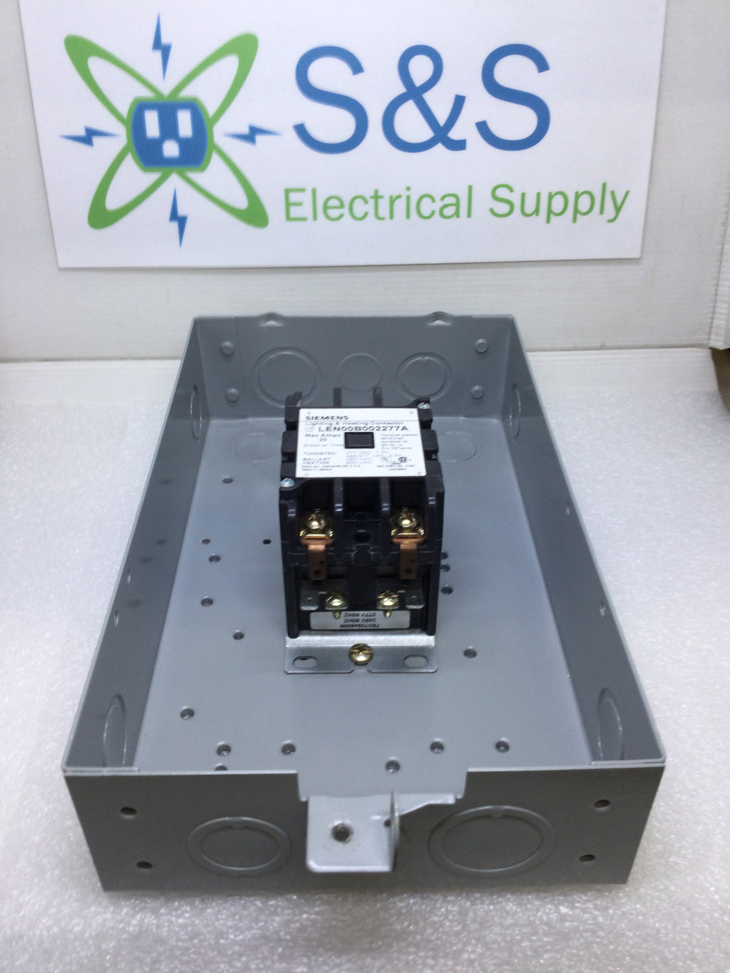 The Siemens LEN00B002277A Lighting and Heating Contactor is designed for single phase 277 Vac applications, with a maximum current rating of 20 amps. Its superior quality and reliable performance make it a dependable solution for your lighting and heating needs. Siemens 49EC14EB110705R Type 1 Enclosure included.