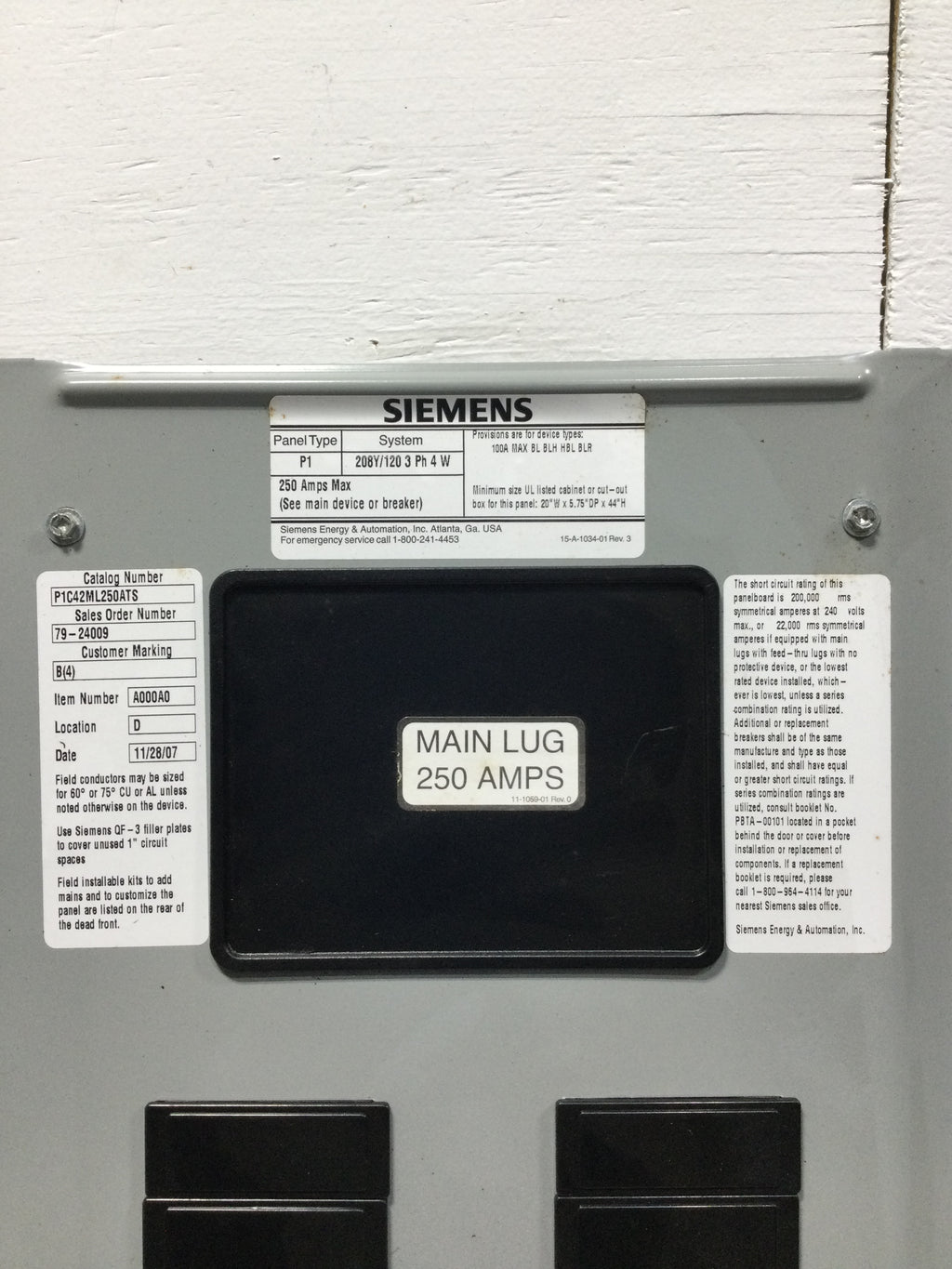 Siemens P1C42ML250ATS 250A 42 Space 120/240V Guts & Dead Front 36 3/4" x 13 3/4"