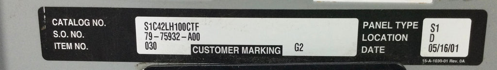 The Siemens S1CA42LH100CTF is a 42-space, 250-amp dead front panelboard designed for reliable electrical distribution. Measuring 36" x 12 3/4", it features a main breaker for enhanced safety and control. Ideal for commercial or industrial applications, this panelboard ensures secure circuit management and easy installation, meeting rigorous electrical standards for performance and durability.