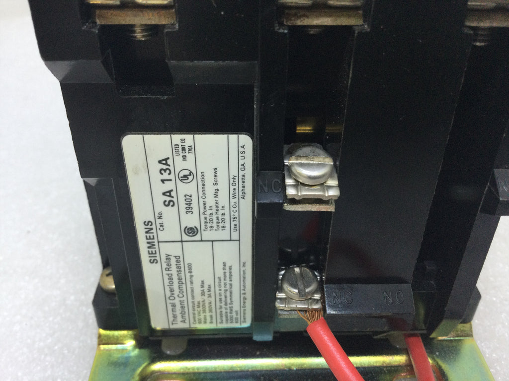 Siemens SXL-BO STARTER 18 Amp 600 VAC Nema Size 0 Contactor