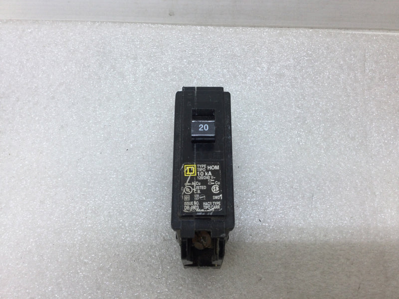 Square D HOM120 20 Amp 1 Pole 120/240V Circuit Breaker - Yellow Sticker
