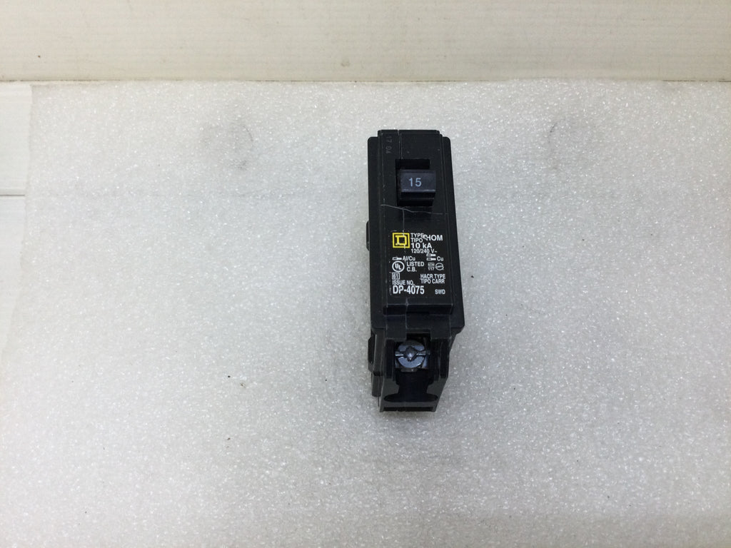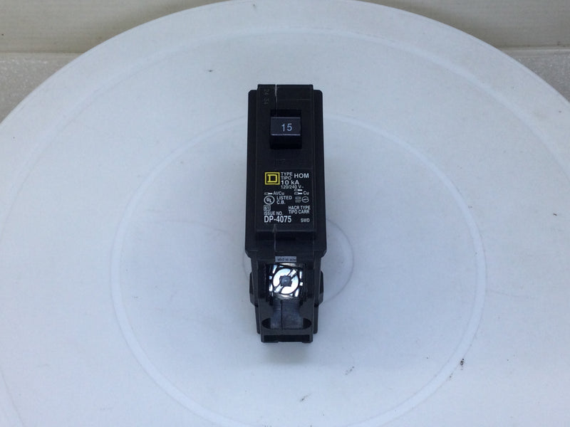 Square D HOM115 15 Amp 1 Pole 120/240V Circuit Breaker - Yellow Face