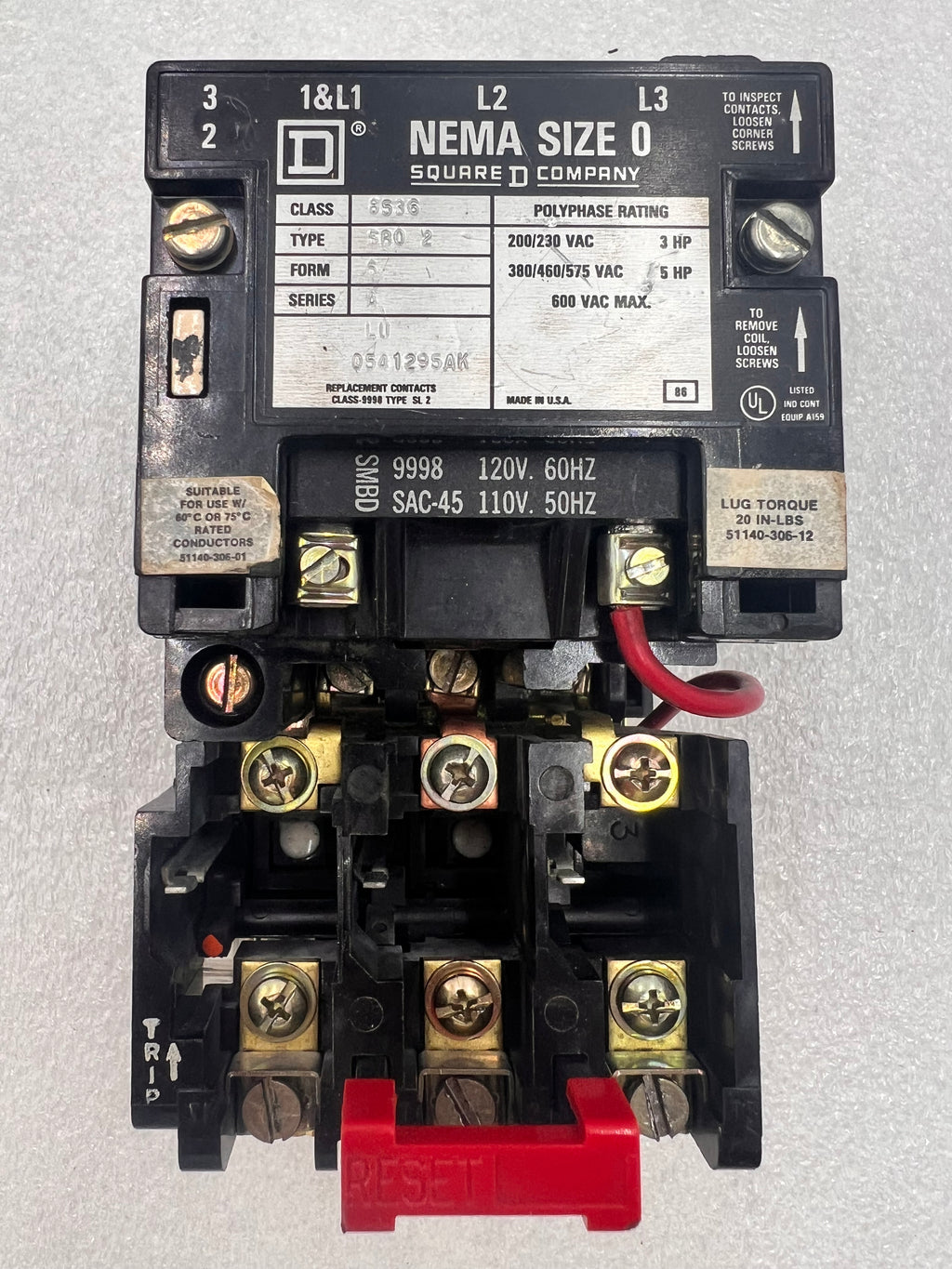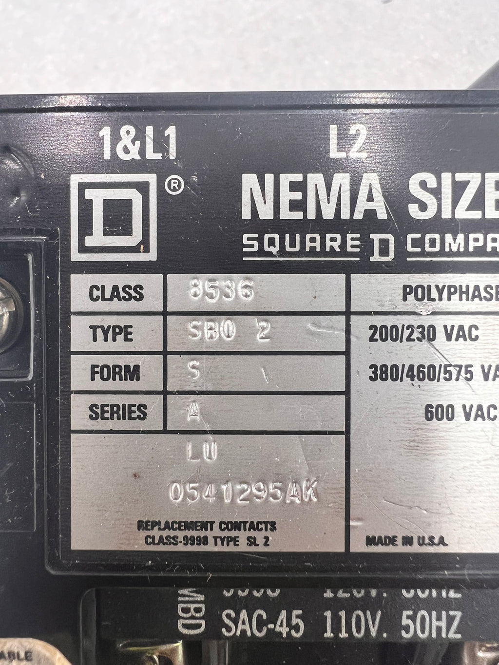 Square D 8536SBO2A Contactor 600V Max Series A 3-Phase Size 0 SAC-45 SMBD 9998 120V 60Hz 110V 50Hz