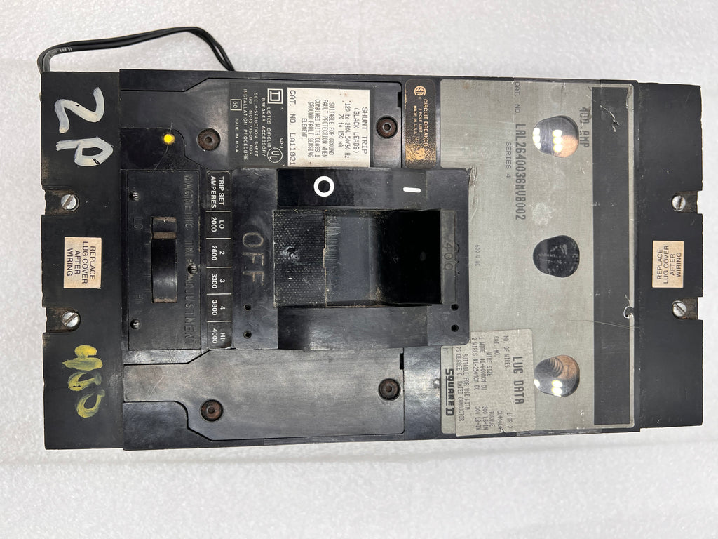 Square D LAL2640036MV8002 400 Amp 3 Pole Circuit Breaker W/ Shunt Trip LA110211 120/240V