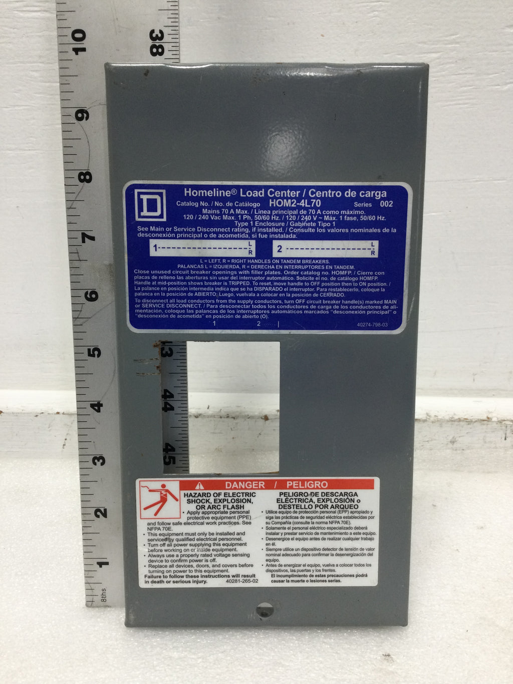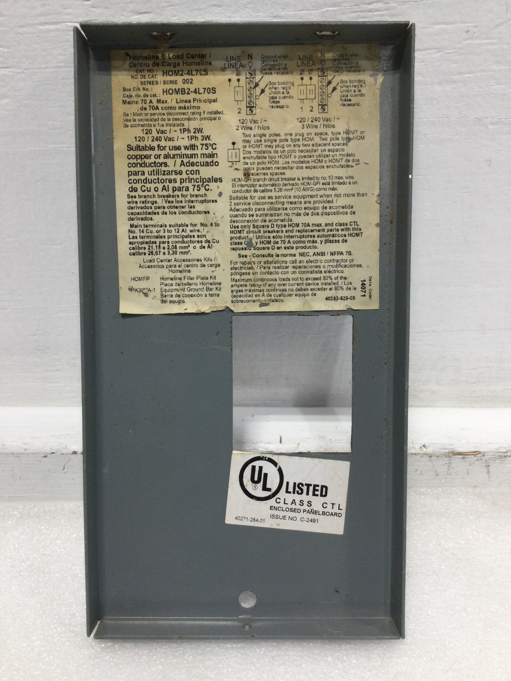Square D HOM2-4L70 70 Amp 2 Space 120/240V Dead Front Only 9 1/2" x 5"