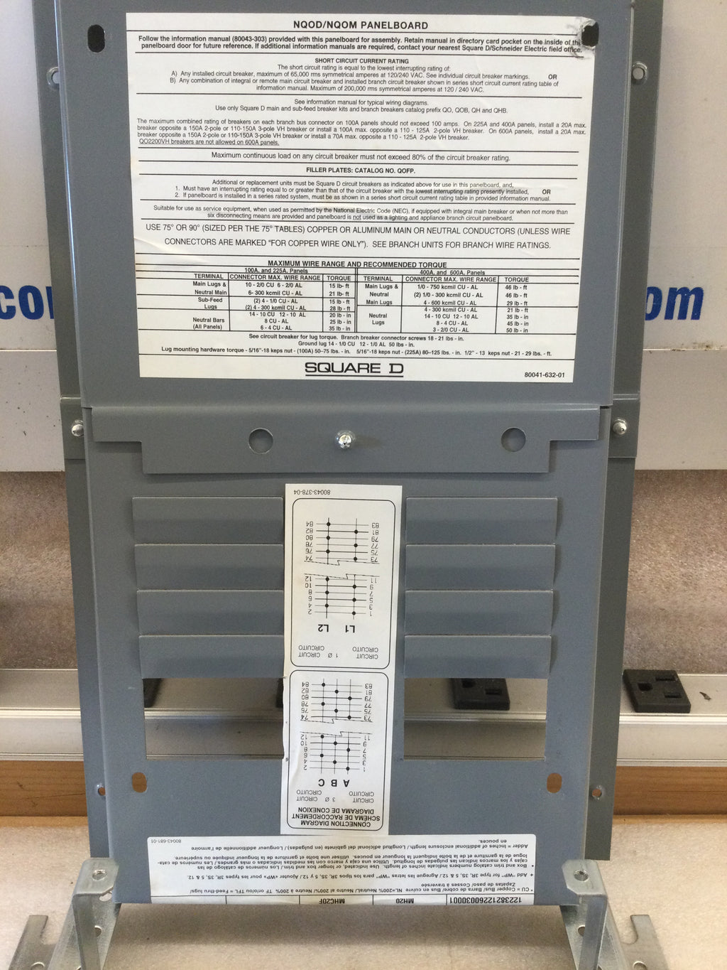 Square D 12238212260030001 NQOD Ser E2 Single Phase 100A 120/240V MLO 12 Circuit Panelboard Interior