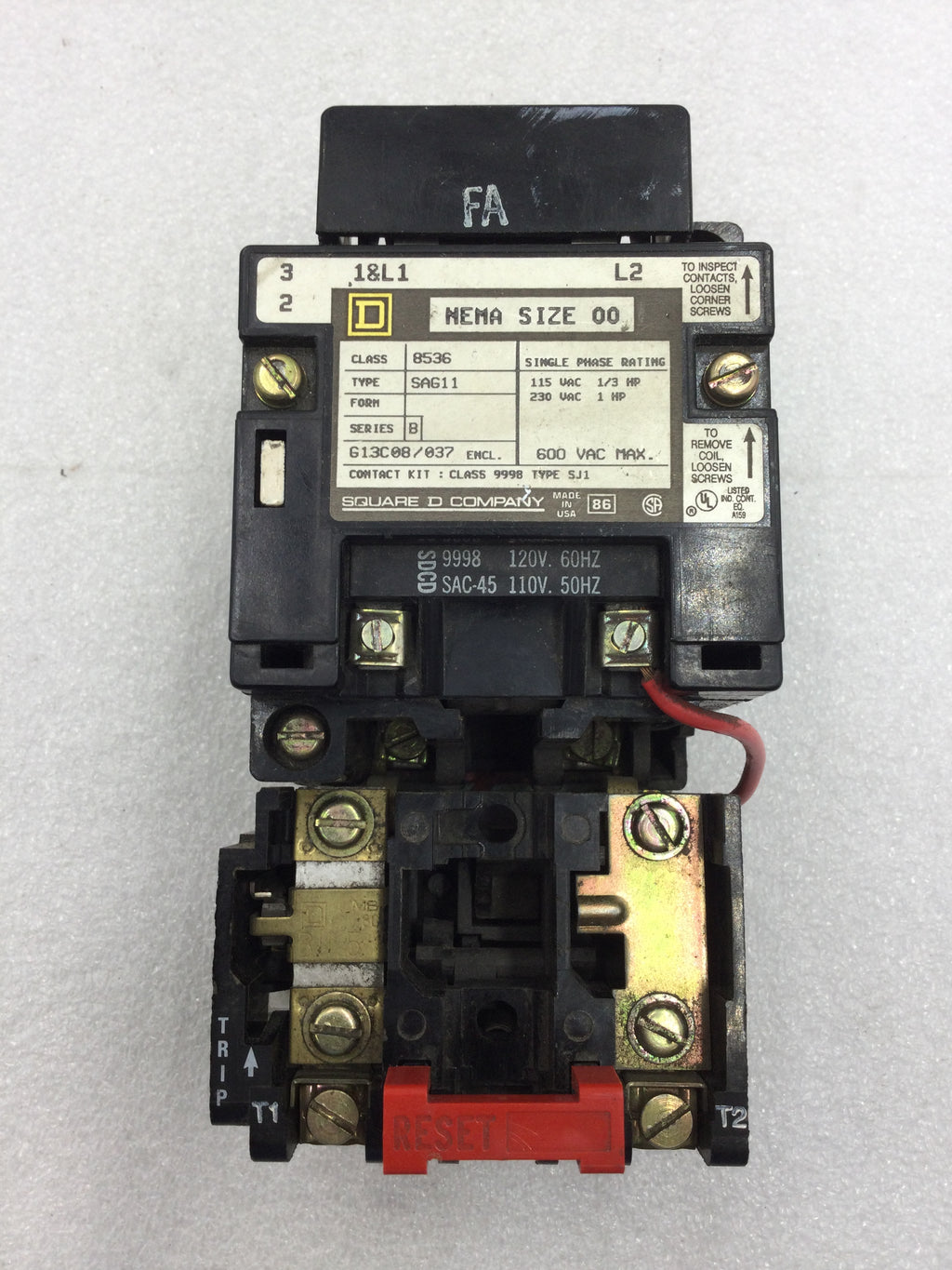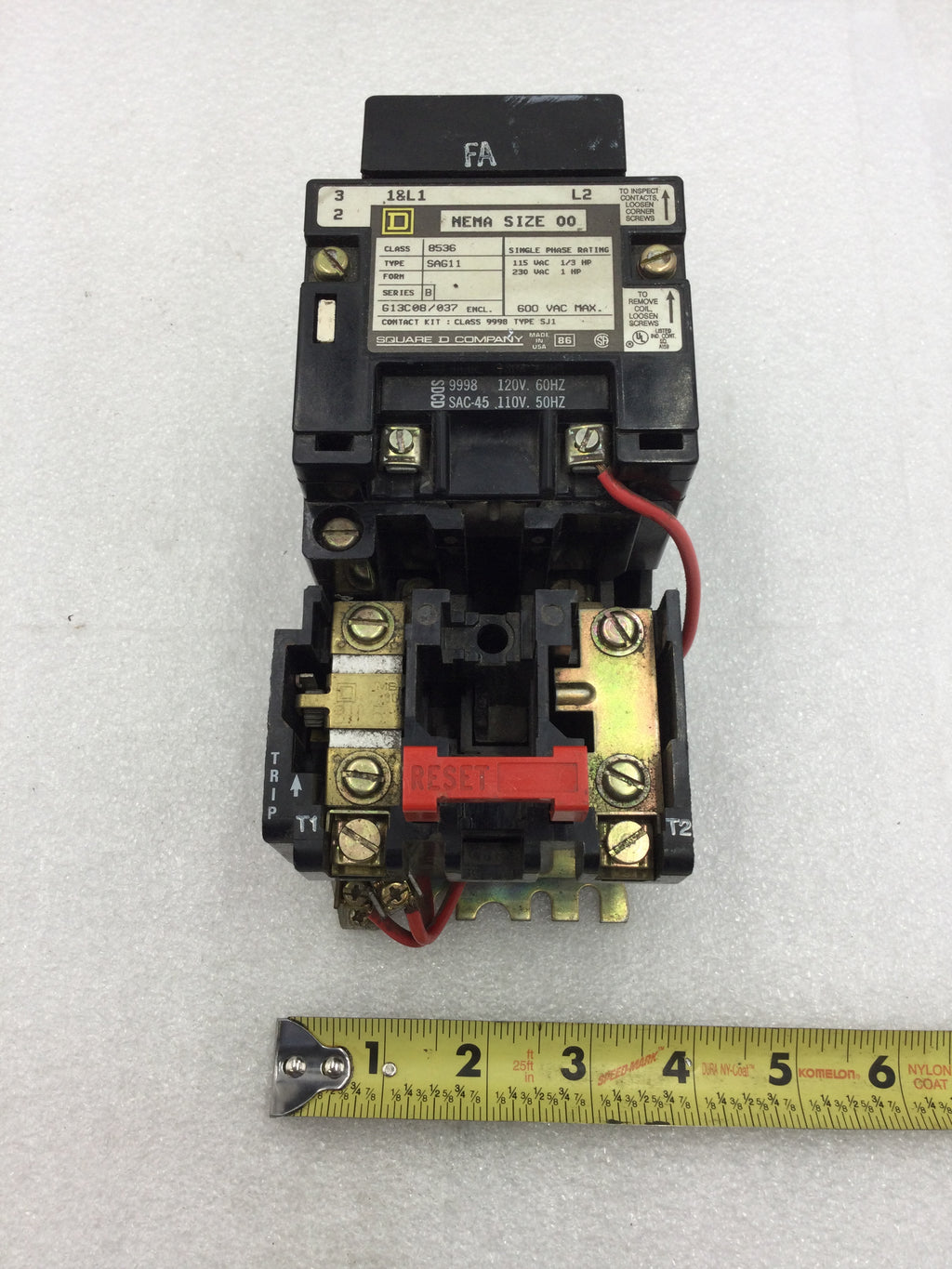 Square D 8536SAG11 Nema Size 00 Series B Contactor/Starter 2 Pole 115/230 VAC with 120 VAC Coil