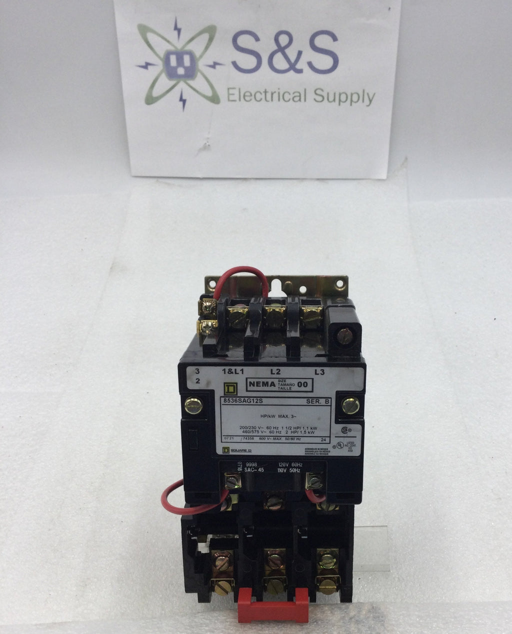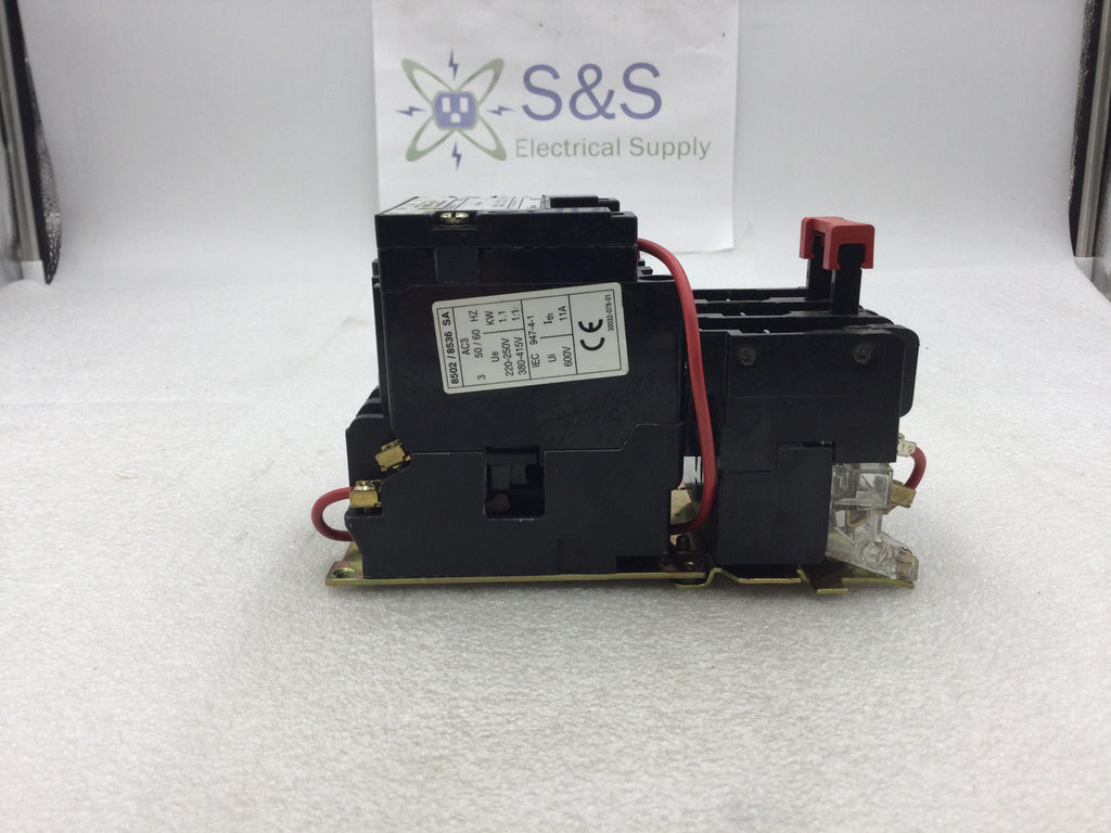 Square D 8536SAG12S 3 Pole 200/230 VAC @ 1 1/2HP 460/575 VAC @ 2Hp Motor Starter Nema Size 00 with 120 VAC Coil