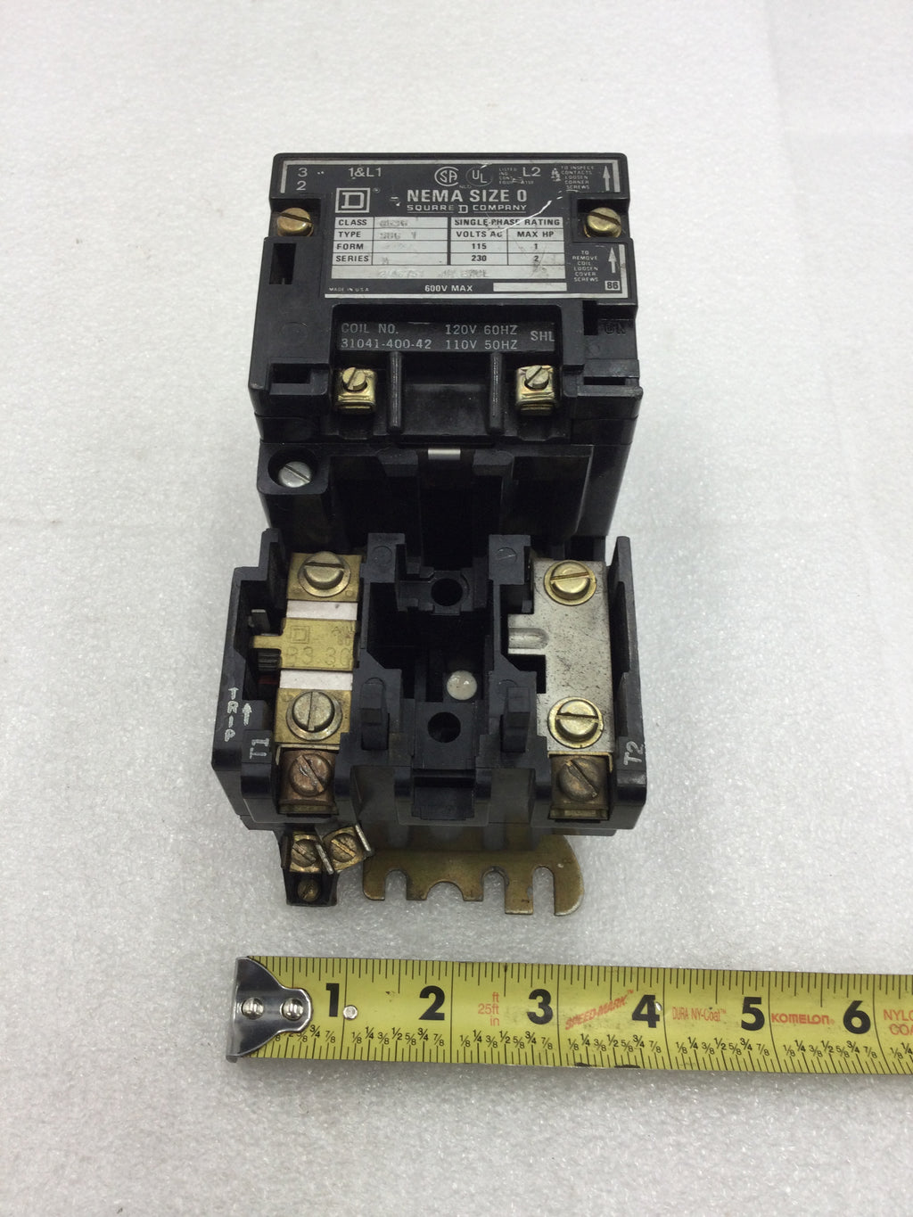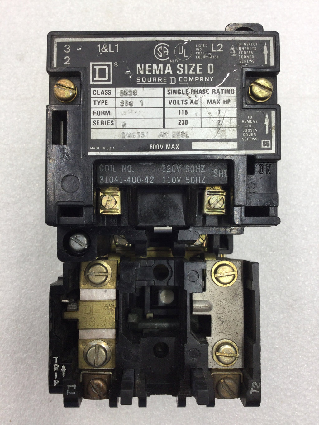 Square D 8536SBG1 Nema Size 0 Series A 2 Pole 115/230 VAC Contactor/Starter with 120 VAC Coil