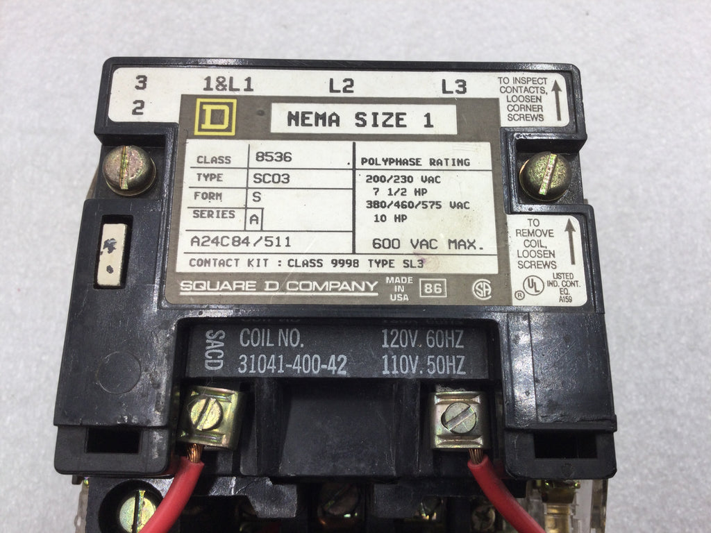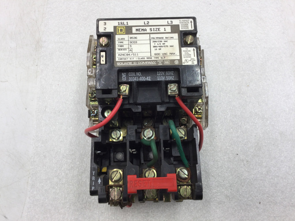 Square D 8536SC03A Contactor 600V Max Series A 3-Pole Electrical Interlock Size 1