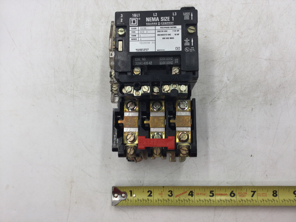 Square D 8536SCO3S Size 1 Series A 3 Pole 600 Vac Contactor