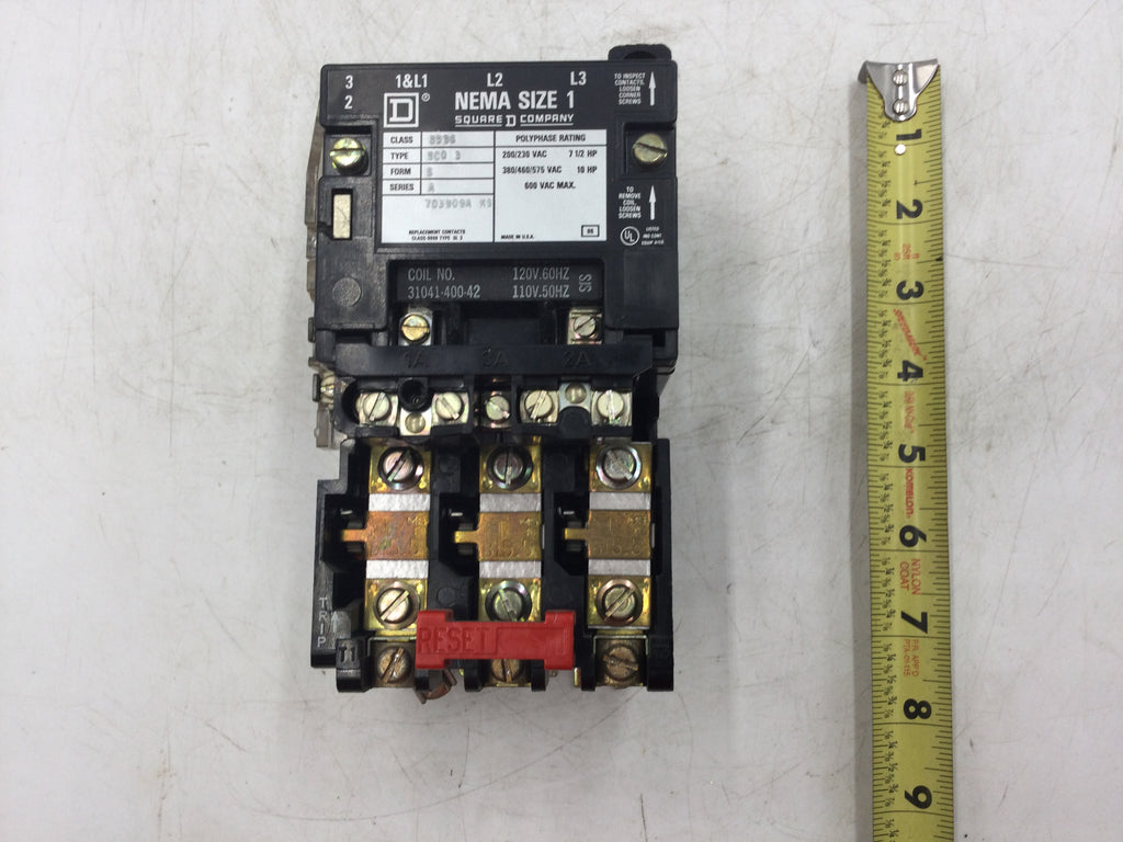 Square D 8536SCO3S Size 1 Series A 3 Pole 600 Vac Contactor