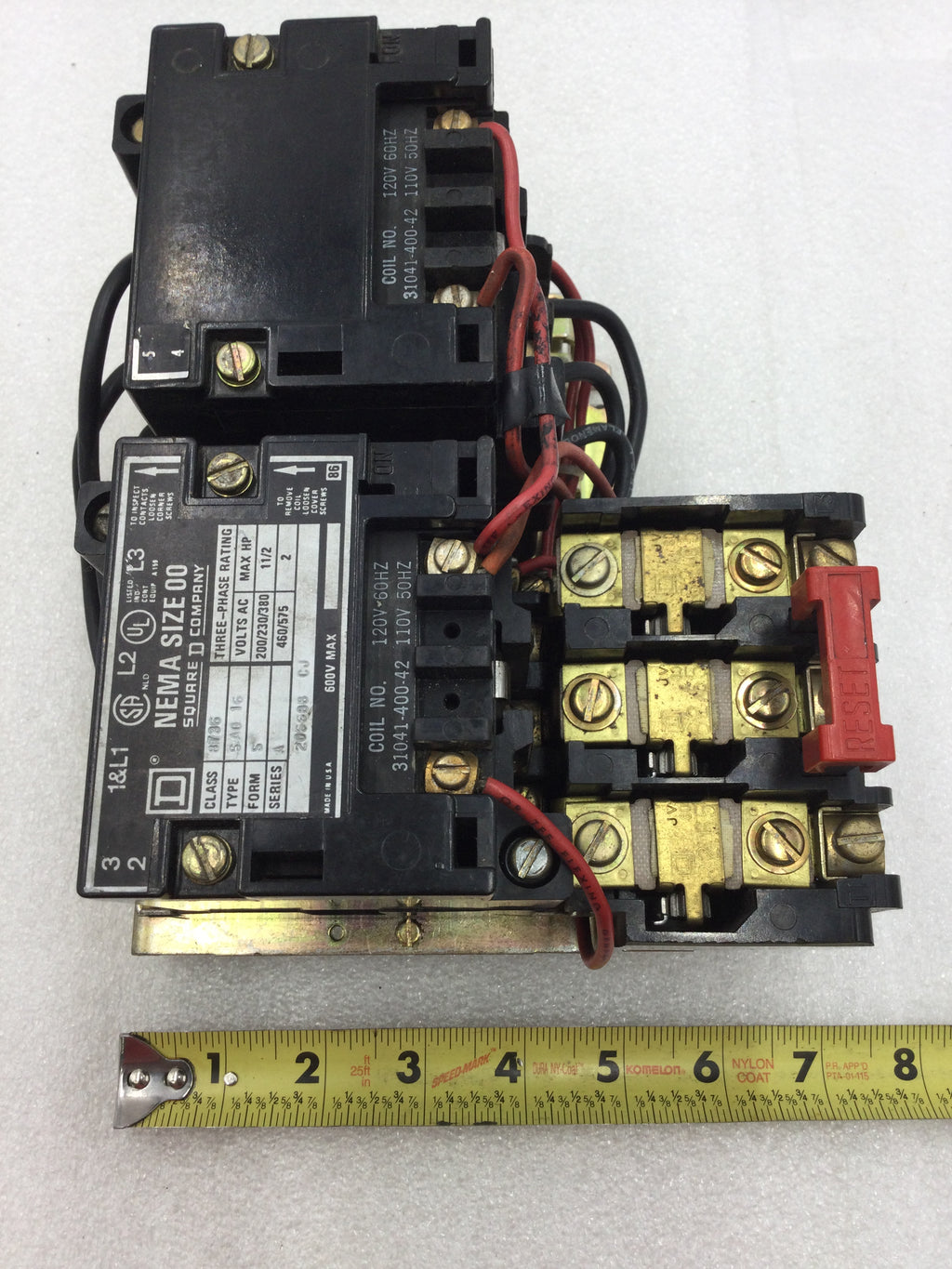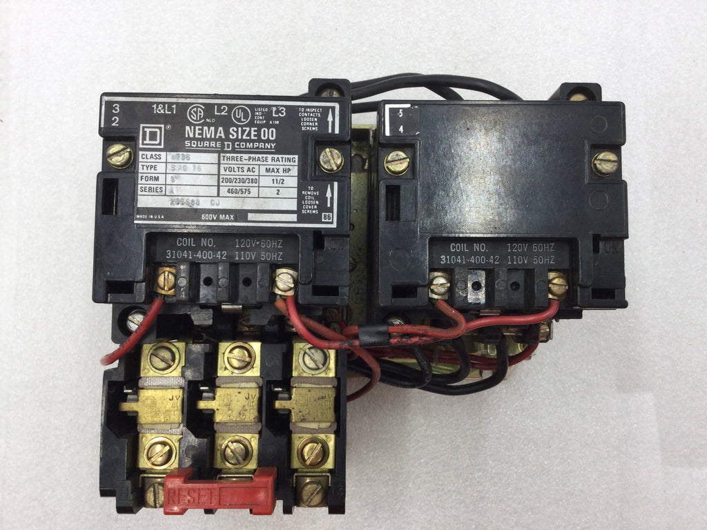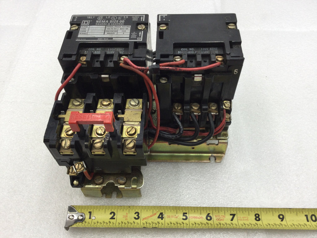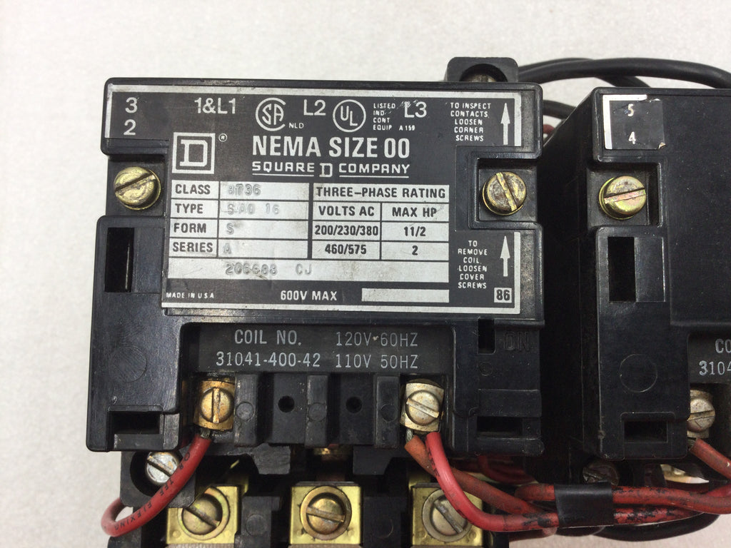 Square D 8736 SA016 Nema Size 00 Series A Reversing Starter/Contactor 3 Phase 115-575 VAC 1 1/2 to 2 HP with 120 VAC Coil