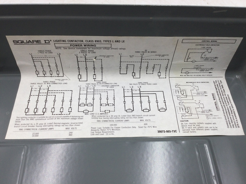Square D 8903 LXG80 Nema 1 8 Pole 120V Coil Lighting Contactor