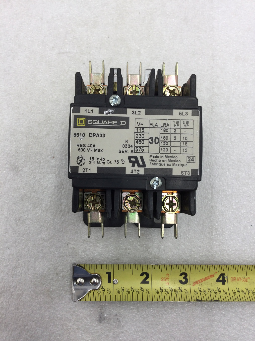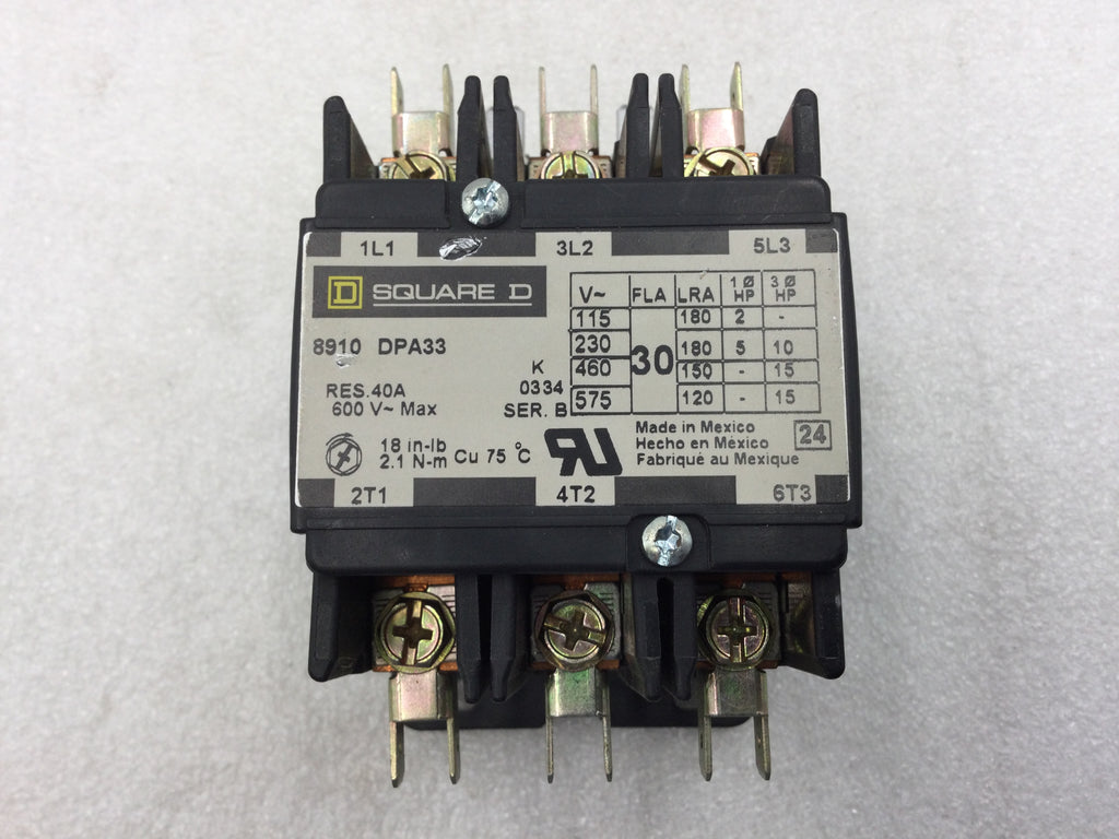 Square D 8910DPA33V06 Definite Purpose Contactor 30 Amp 600 VAC 480 VAC Coil