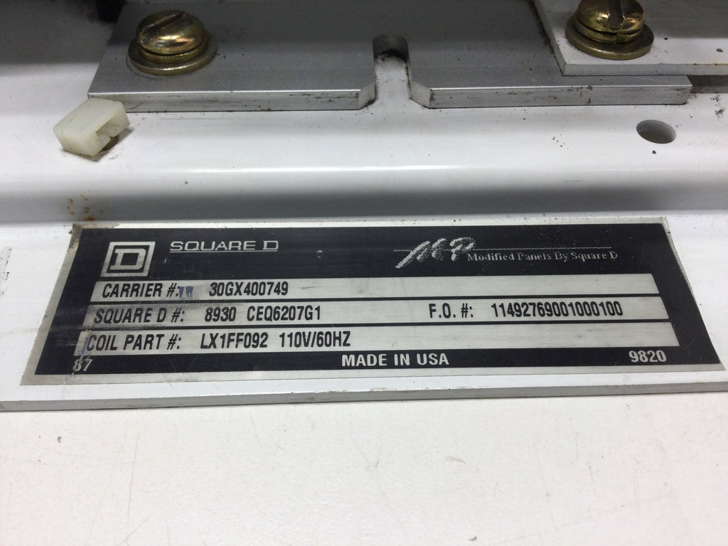 Square D 8930 CEQ6207G1 Chiller Starter Unit Carrier Part # 30GX400749 Comes with 3 Telemecanique LC1F115 175 Amp Contactors and 120 VAC Coils