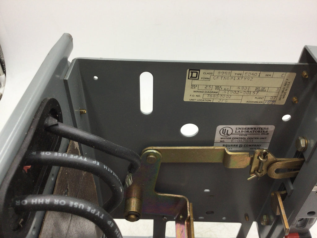 Square D 8998-ED401-C Motor Starter Bucket Box 480 VAC 3 Phase 25 HP