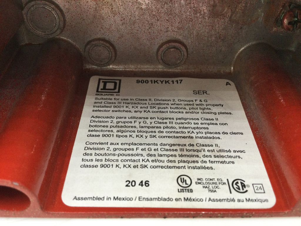 Square D 9001 KYK117 Push Button Control Station Enclosure Only