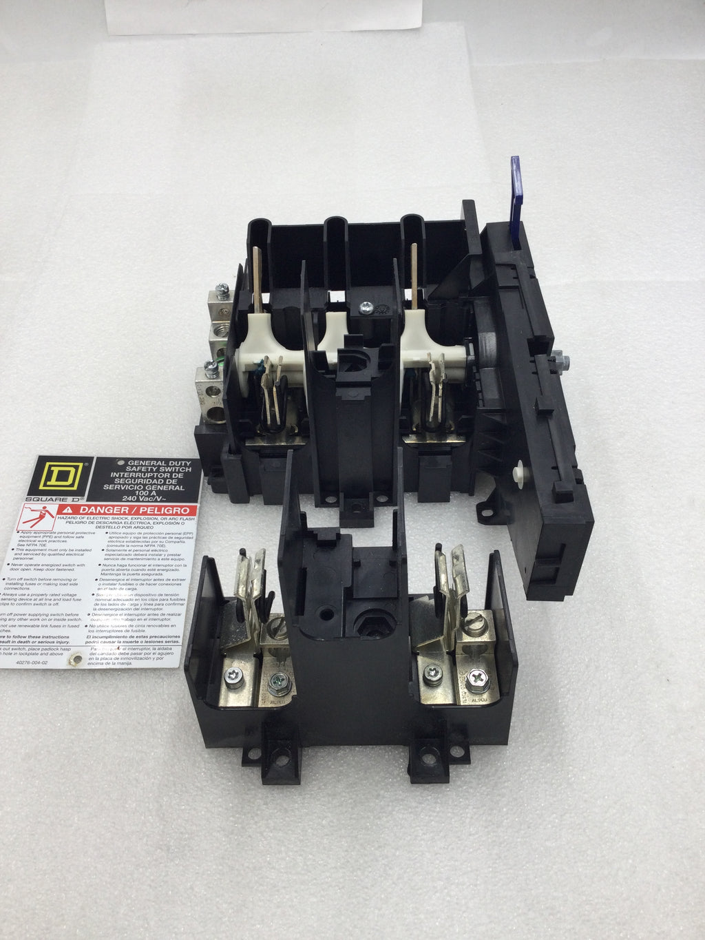 Square D 2 Pole 100 Amp 240 VAC Fusible General Duty Safety Switch Guts Only 7" X 11"