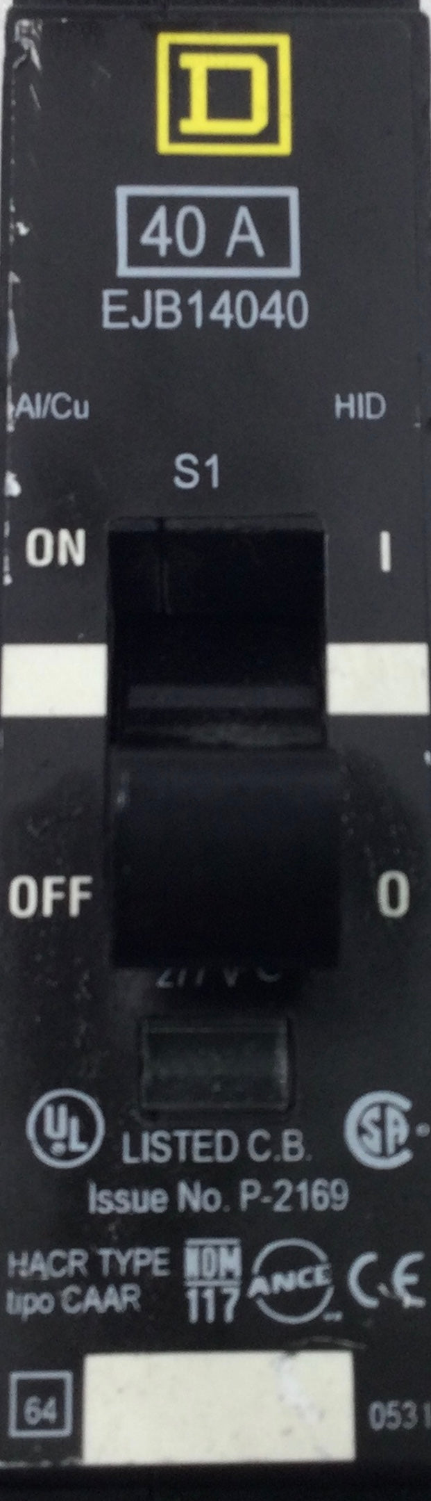 Square D EJB14040 40 Amp 1 Pole 277V E Frame Circuit Breaker