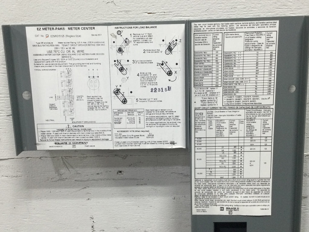 Square D EZMR315-125 125 Amp 3 Phase 208Y/120V Meter Socket 57 1/4" x 12 1/4"