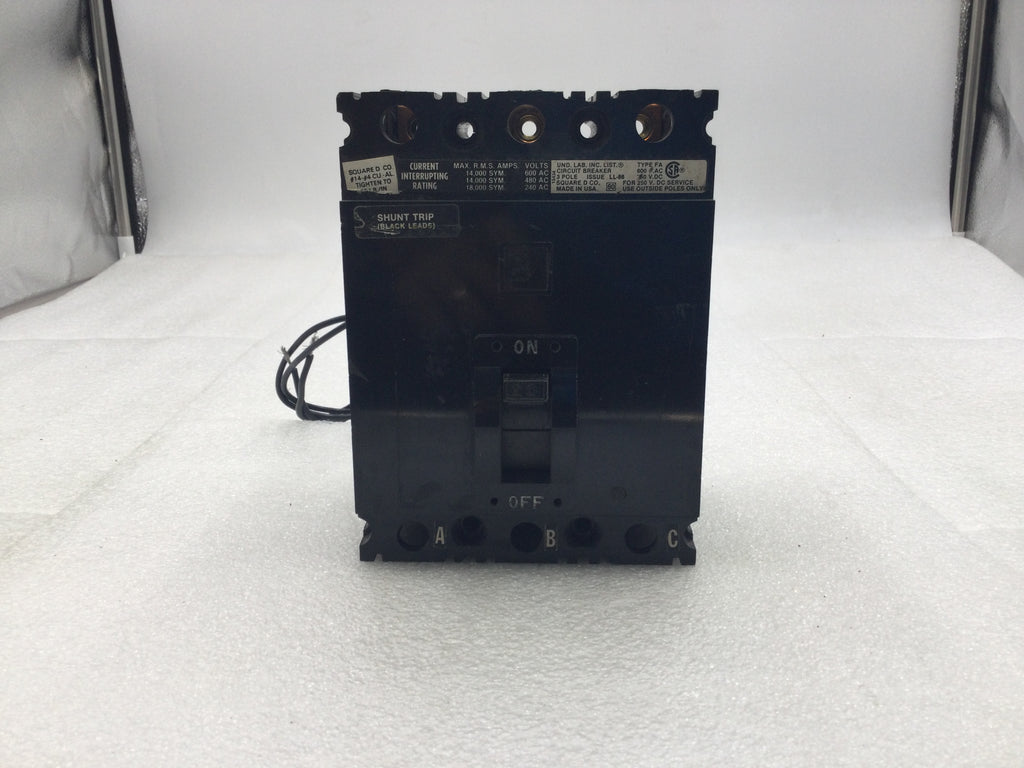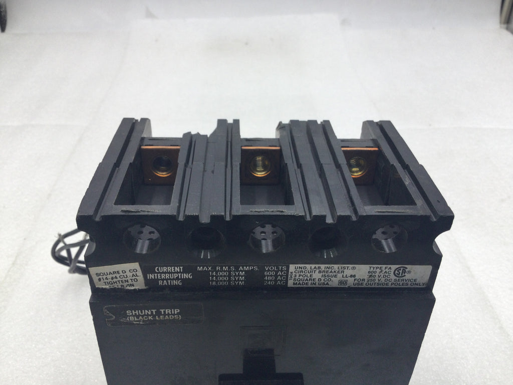 Square D FA360201021 20A 3 Pole 600V Circuit Breaker w/Shunt Trip - Cosmetic Flaw