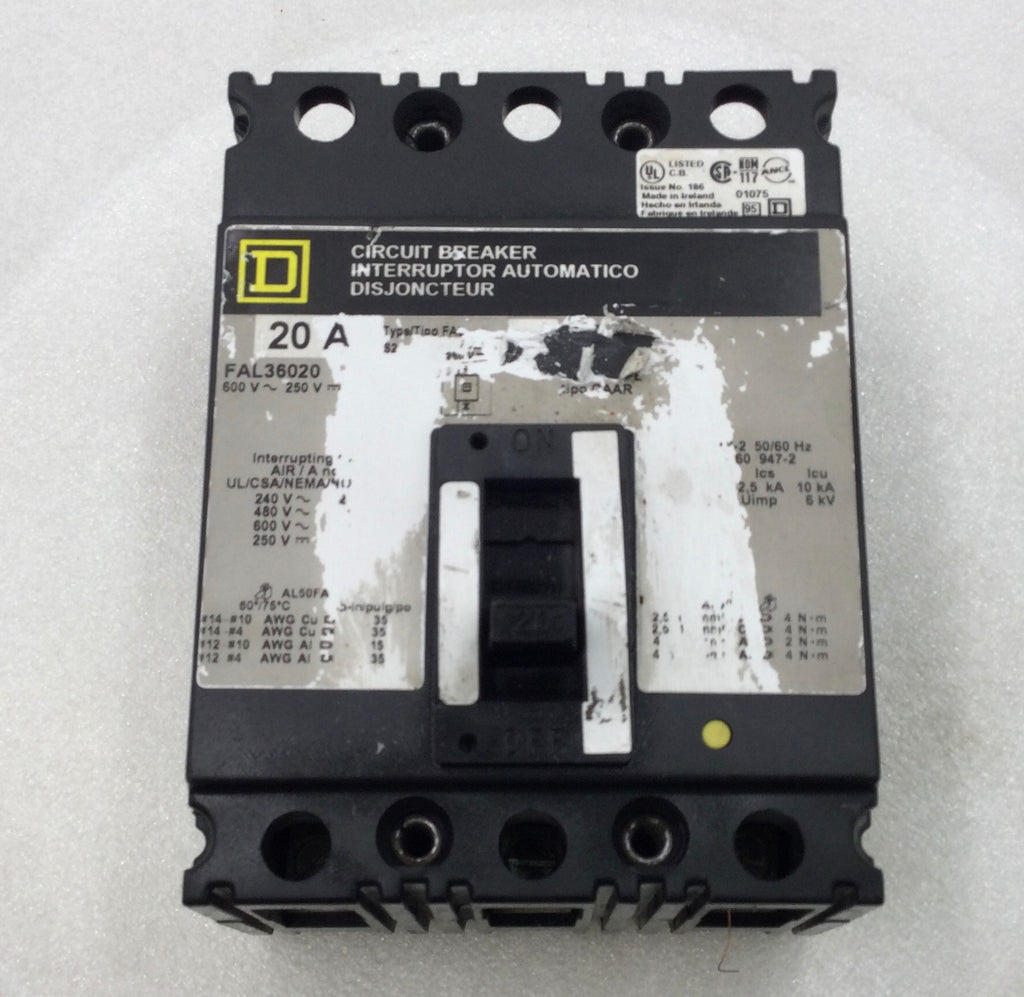 Square D FAL36020 20 Amp 3 Pole 600V Circuit Breaker
