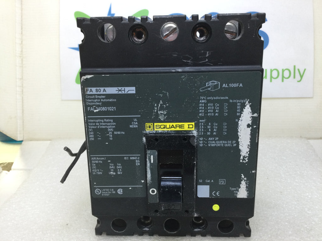 Square D FAL340801021 80 Amp 3 Pole 480V Circuit Breaker w/Shunt Trip