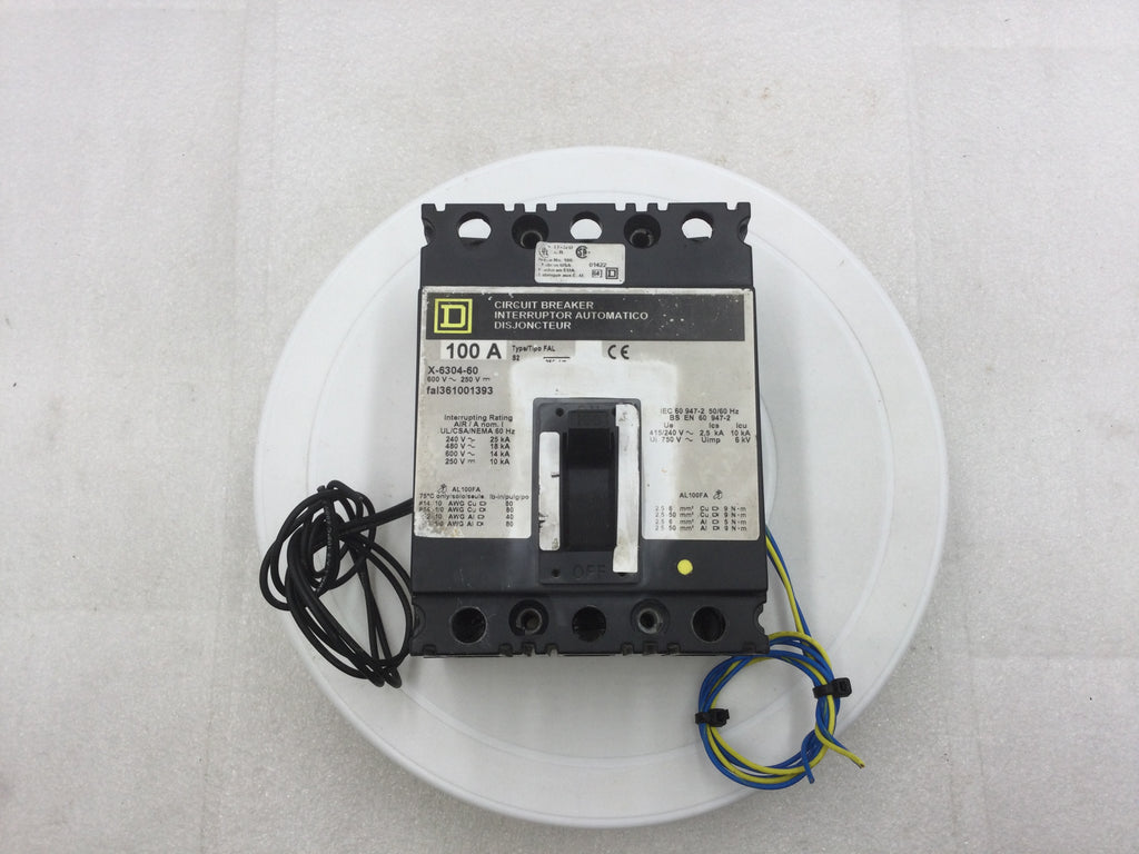 Square D FAL361001393 100 Amp 3 Pole 600V Molded Case Circuit Breaker w/ Shunt Trip