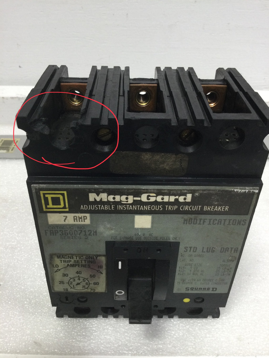 Square D FAP3600712M 7 Amp 3-Pole 600V Circuit Breaker -Cosmetic Flaw